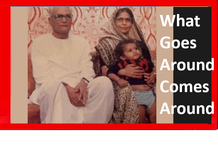 बाबा के जाने के अगले वर्ष काका भी चले गए। वह योगी शायद माता-पिता को मोक्ष दिलाने ही मानव रूप धारण करके आए थे। ईश्वर से निरंतर प्रार्थना है उनके जैसी बन पाऊं और वही संस्कार घर के सभी बच्चों को मिले। (चित्र में बड़े काका-काकी और मेरा प्यारा भतीजा)