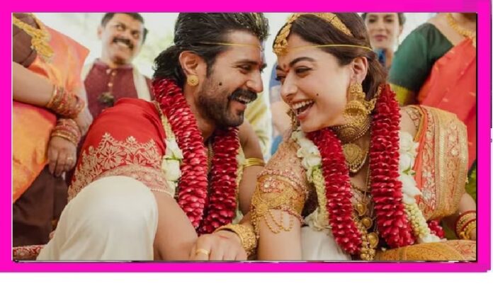 दूल्हा-दुल्हन के रूप में सजे विजय और रश्मिका से फैंस की नजरें हटाना मुश्किल हो रहा है। शादी के जोड़े में दोनों सचमुच “मेड फॉर ईच अदर” नजर आए।